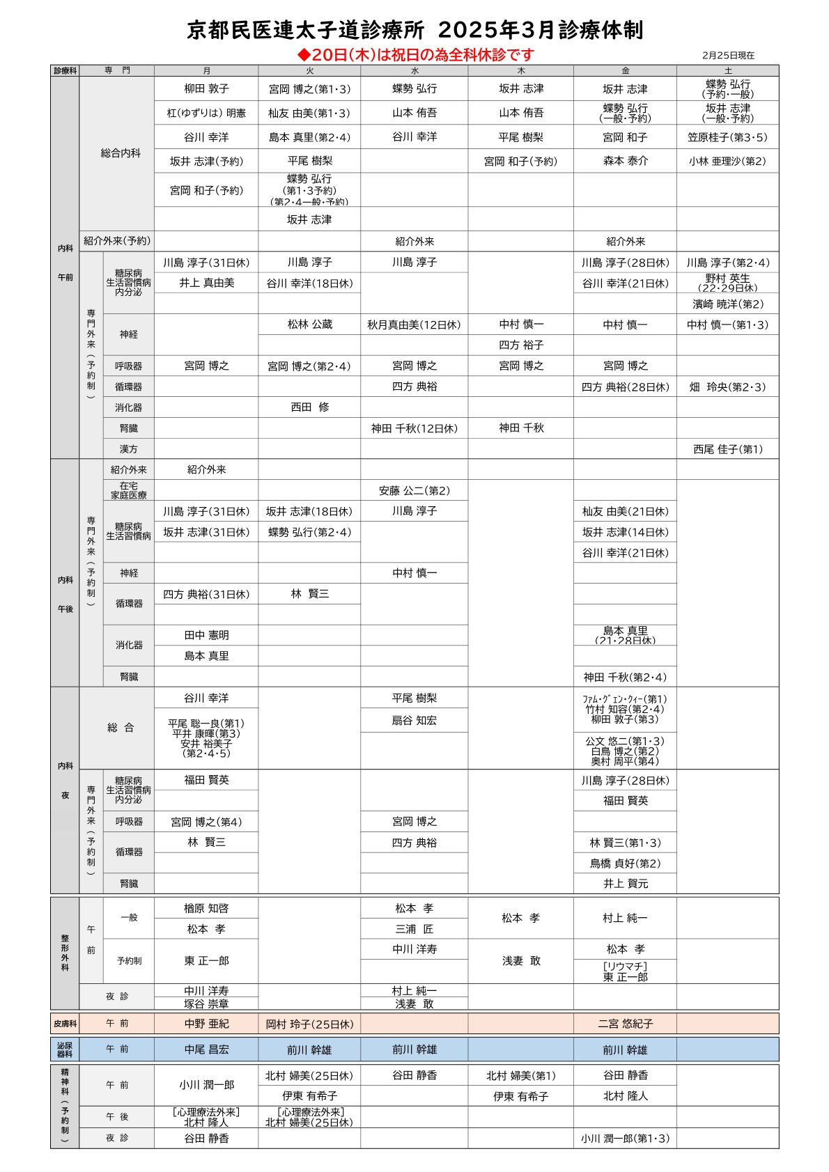 ホーム 当院について お知らせ 2025年3月医師体制を掲載しました お知らせ 2025年3月医師体制を掲載しました 2025年02月28日 3月医師体制表(PDF) ※臨時の体制変更はこちらをご参照ください
