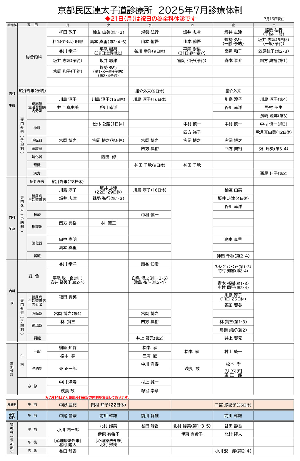 ◆11日(月)・15日(金)夜診・16日(土)は全科休診です