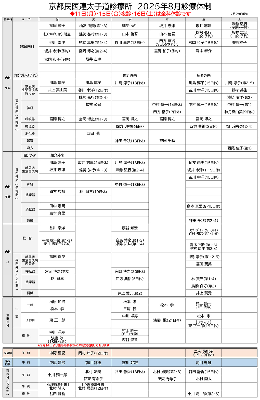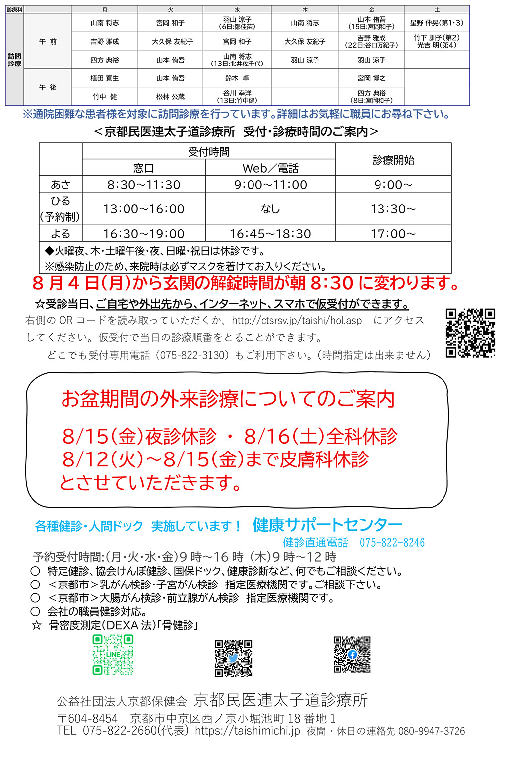 ( ※皮膚科は8/12(火)~8/15(金)も休診です )