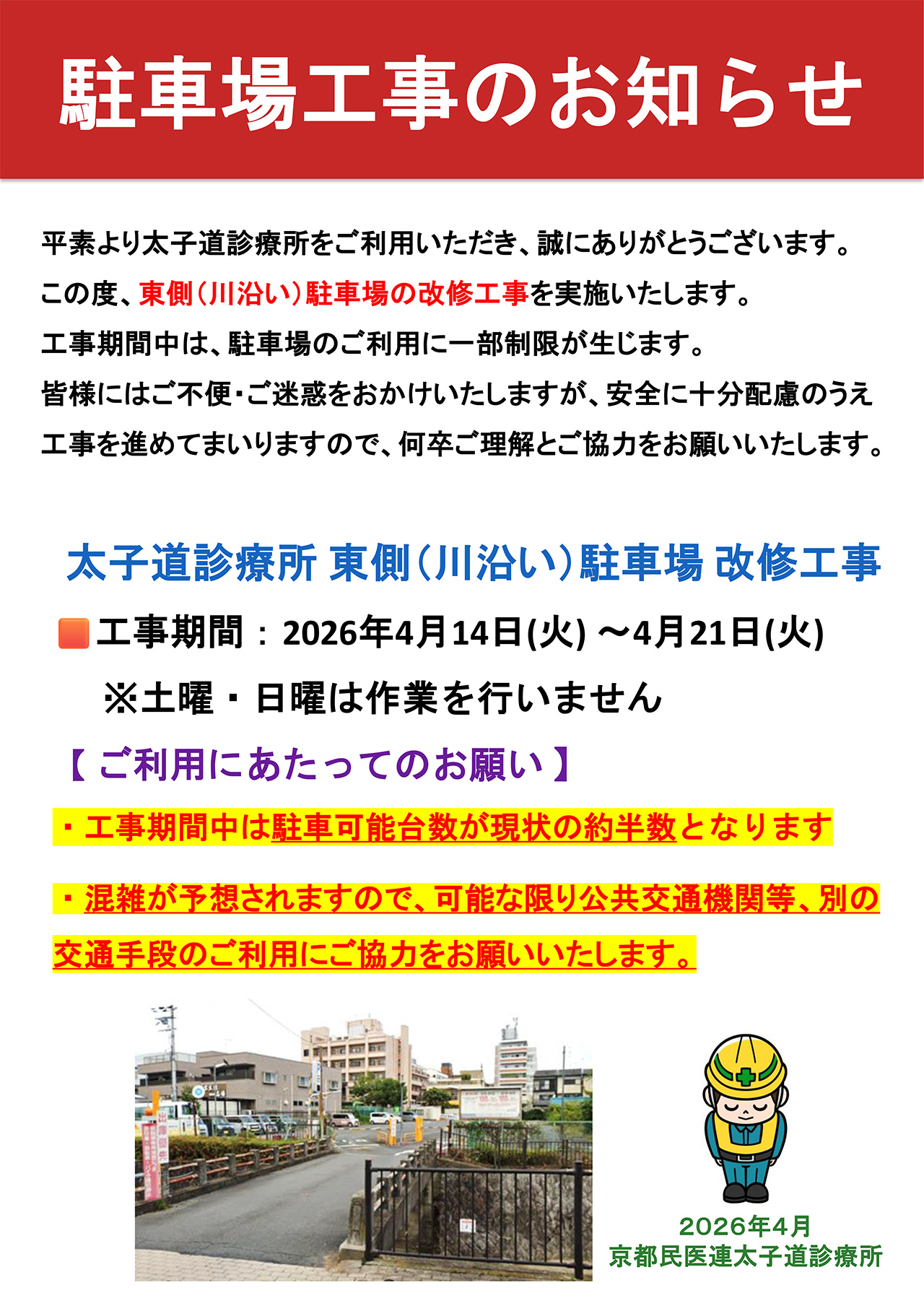 工事期間:2026年4月14日(火)~4月21日(火)